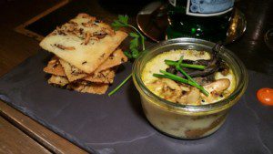 It is called Caesar Salad with Spiced Beef Tartare but there were only two pieces of hearts of romaine so a salad it is not. The beef tartare sat on a toasted bread cracker. There are two steak fries sitting on the plate as well that did not make a lot of sense to the dish.