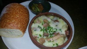 The last dish from the hor d’oeuvres was the Rachlette with Country ham, potatoes, caramelized onion, mustard and toast. Is there anything more decadent than a dish of melted cheese? Be sure to eat this dish right when it comes to the table while the cheese is still hot and bubbling.