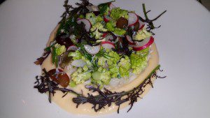 Peekytoe Crab with Romanesco Cauliflower, Red Crapes, Rutabaga Vichy