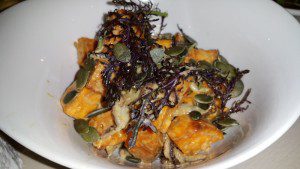 Aside from being a colorful dish, the Cauliflower Steak Romesco with Vegetable Chutney was thick and filling…..not bad for a meat-free, vegan dish.