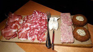 Chi Spacca is over one year old now but I finally made it….barely! I knew it was near Mozza but managed to pass it three times before I gave up on Waze all together. I found a spot on the street and walked past the Osteria Mozza entrance to where there is a small sign with just the image of the cleaver on it (Chi Spacca means “cleaver” in Italian). Without a noticeable sign, especially one without words, it was a bit difficult to find.