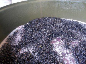 The grapes had been sitting in the bins in the winery since we picked Monday and Tuesday. The winery is built into a hill and therefore maintains a constant cool temperature for the grapes.