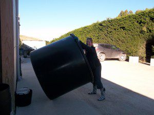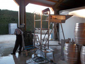 In order to get ready for the impending grape picking, we (the harvest team) spent Easter Sunday preparing the winery. We first had to pull the fermenters out of storage.