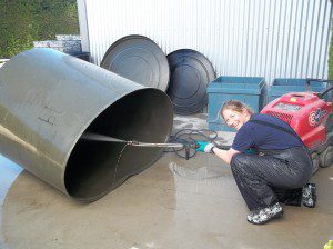 We then used a pressurized power wash with 100 degree water to wash out the fermenters.