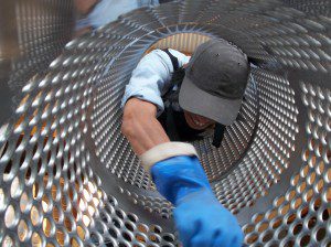The destemmer was cleaned as well, using caustic (a base) to remove the tartrates (crystals formed by acids).