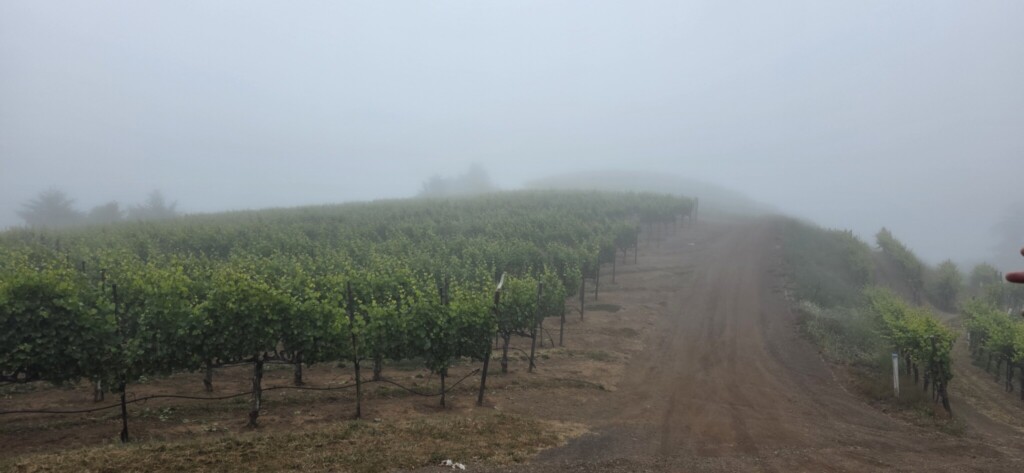 As we left the winery, we could see that the fog was slowly starting to lift, just in time for the afternoon sun to help the grapes continue to ripen on the vines.