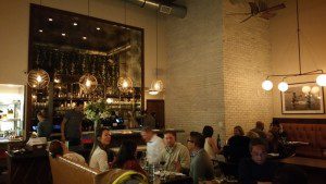 Located on Washington Boulevard, the space is high-ceilinged with long leather banquettes. There is a long bar with stools that face the open kitchen. And the patio, which is along Washington Boulevard, is cosy and intimate.