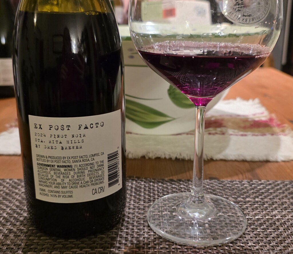 14 Jan Please The Palate Wine of the Week: Ex Post Facto 2024 Pinot Noir, Sta. Rita Hills