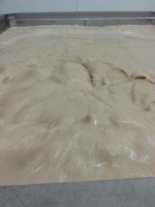The remainder of the mash is transferred to an open top fermenter. Once the yeast has risen, it is added to the open top fermenter.