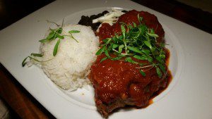 We walked from my friend’s house and as we approached the motor lodge, I was wondering what type of place she was taking me to. But just next door is a cozy little restaurant called La Caraqueña. The restaurant has a low ceiling and tables are closely placed together. It is a cozy place that can only fit 32 people at once. There is some outside dining but due to weather, it is not available year round.