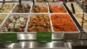 Once you pick your protein, it is placed on the custom grill, which is both a rotisserie and conveyor, and will cook as you build the rest of your plate.